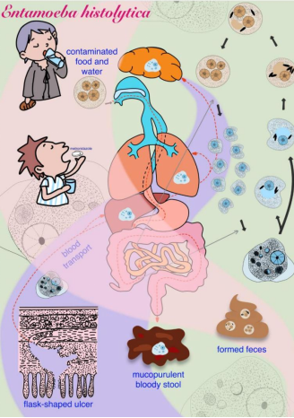 寄生虫学组获得一等奖 作品照片 作品名《溶组织内阿米巴生活史 》作者: 潘子怡 (2021级 临床医学五年制)