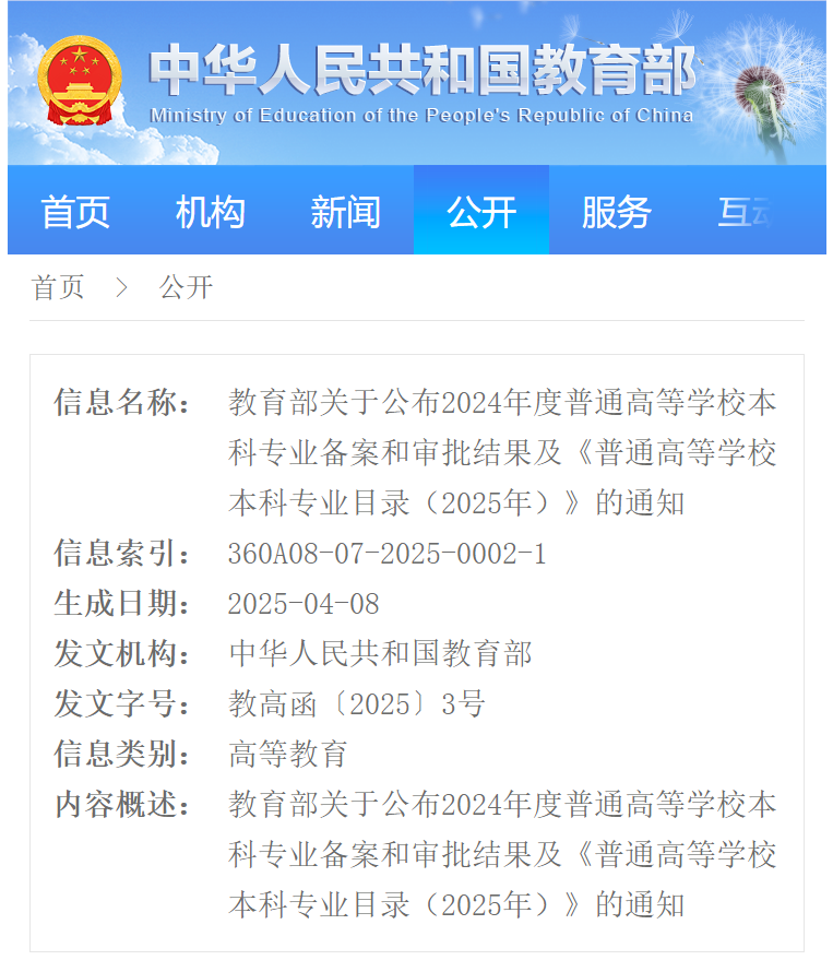 近日,教育部印发《关于公布2024年度普通高等学校本科专业备案和审批结果及〈普通高等学校本科专业目录(2025年)〉的通知》,我院申报的“生物医药数据科学”本科专业(专业代码:101012t;学位授予门类:理学;修业年限:四年)获准设置。生物医药数据科学专业是“新医科”交叉学科领域的医学技术类专业,是国家《服务健康事业和健康产业人才培养引导性专业指南》设置的5个新医科人才培养引导性专业之一。
