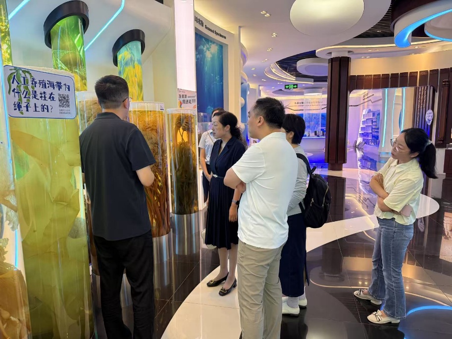 在明月海藻健康科技集团总裁张健陪同下,学院一行参观明月海藻科技馆及海洋食品加工与安全控制全国重点实验室,了解企业在海洋生物医用材料、海藻酸盐提取等领域的创新成果。在科技馆,工作人员介绍了学科交叉下开发的海藻酸盐基伤口敷料等高端医用材料。座谈会上,集团党委书记、董事长张国防介绍了海洋生物制品等领域的发展现状与全产业链创新体系规划。副总裁张德蒙介绍明月与青岛大学合作进展、明月集团研发工作整体情况及海藻酸盐材料产业开发与应用进展。他还深入分析了当前海藻活性物质作用机制解析面临的科学难题,以及临床转化过程中存在的技术瓶颈,期待进一步深化合作,突破关键技术。副总裁孙占一介绍岩藻多糖、ons相关研究与产业研发进展。