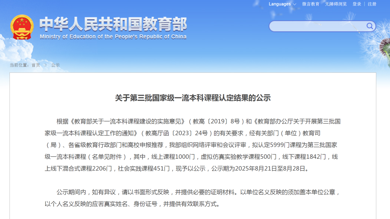 根据《教育部关于一流本科课程建设的实施意见》(教高〔2019〕8号)和《教育部办公厅关于开展第三批国家级一流本科课程认定工作的通知》(教高厅函〔2023〕24号)的有关要求,教育部第三批国家级一流本科课程认定结果近日公布,基础医学院《心肌再灌注损伤探究虚拟仿真实验》与《病理生理学》两门课程成功入选,标志着学院在课程建设方面取得新的重大突破。至此,基础医学院共获批国家一流本科课程5门,山东省一流本科课程10门。