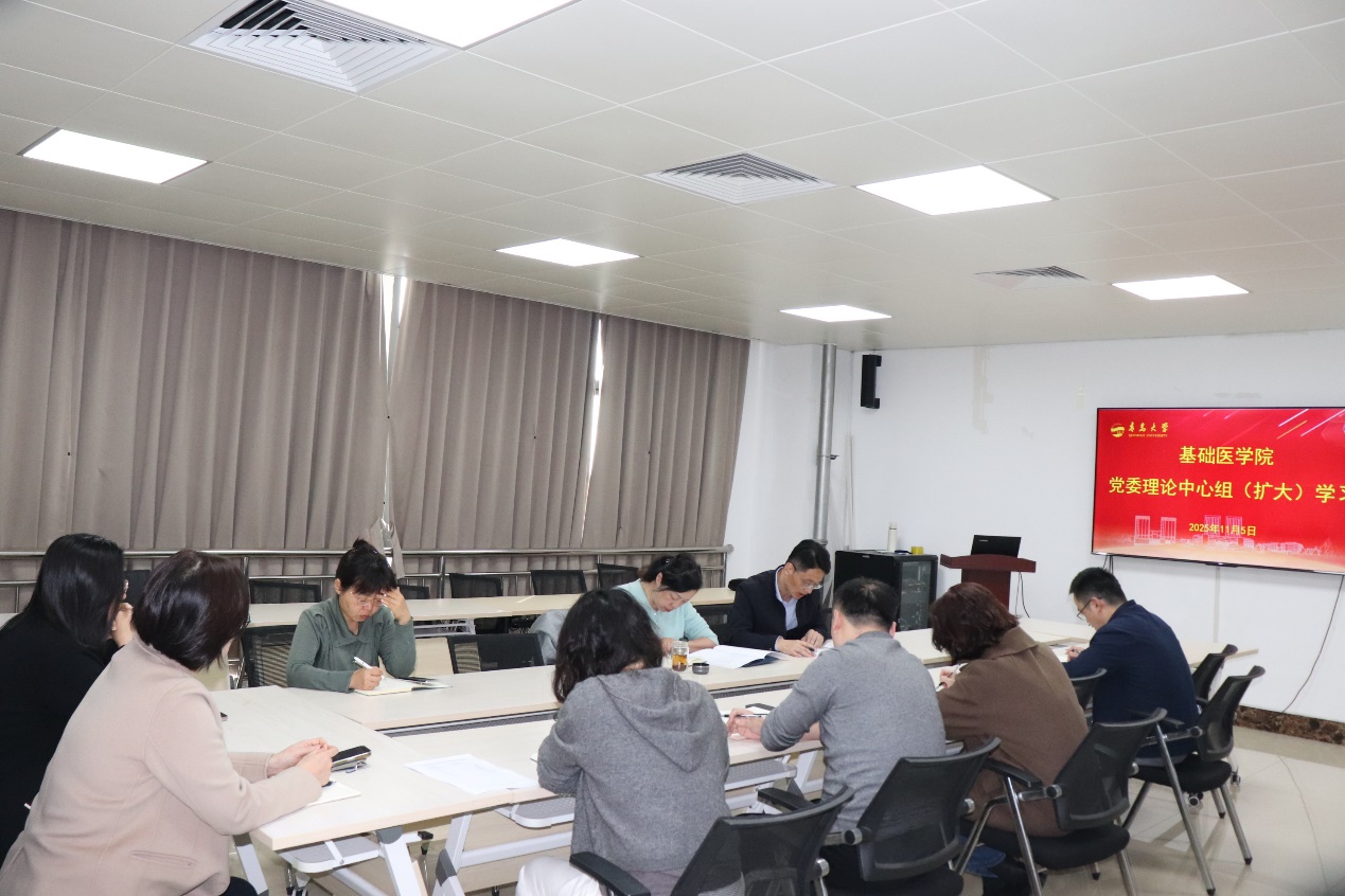 11月5日下午,青岛大学基础医学院召开党委理论学习中心组(扩大)集体学习会,深入学习贯彻习近平关于《中共中央关于制定国民经济和社会发展第十五个五年规划的建议》的重要说明及《建议》全文,旨在精准对接国家战略,科学擘画学院“十五五”期间的发展蓝图,推动学院各项事业迈向新高度。